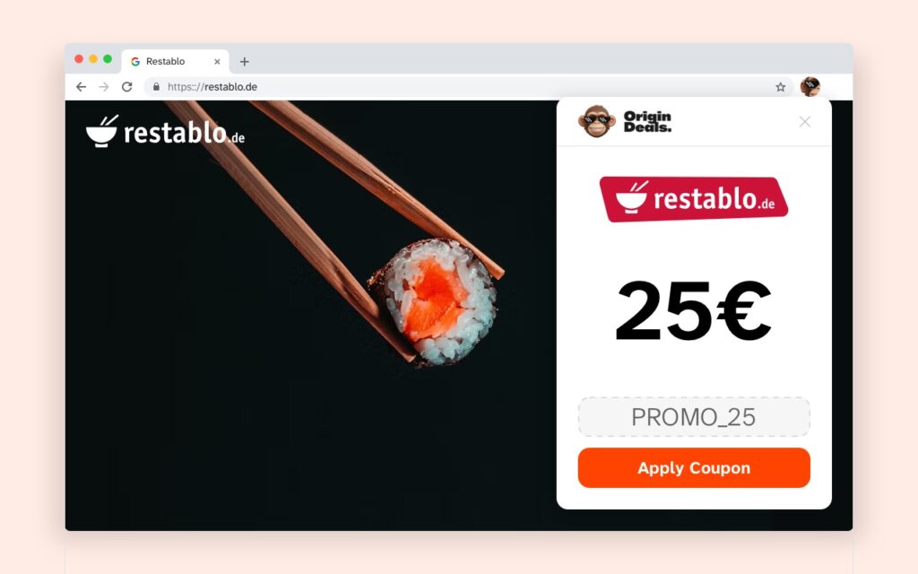 The OriginDeals Chrome extension will automatically find and